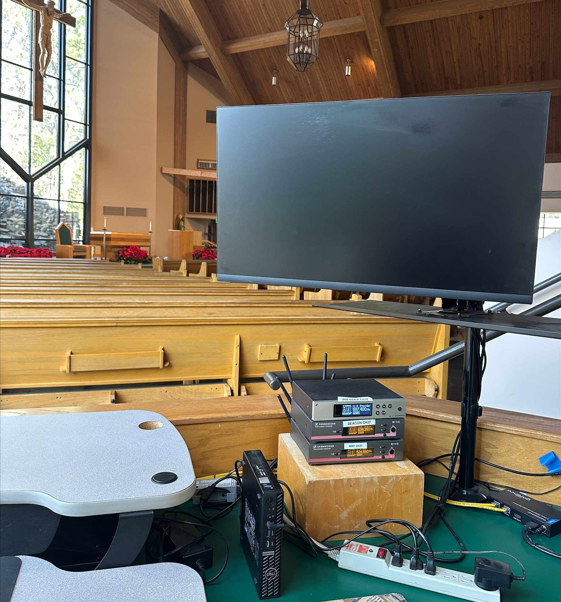 A number of years ago, the Parish decided to do away with Music Books and Printed Guides for our Masses. This was replaced with electronic projections of slides on the Screens in the Church. Those who would like to help change the slides at Mass on Saturday or Sunday please contact Buddy.
